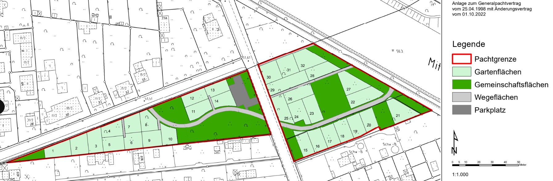 Lageplan der Gärten Hier sind die 2 Bereiche der Kleingärten zu finden. Diese werden durch die Straße Im Othfelde geteilt.